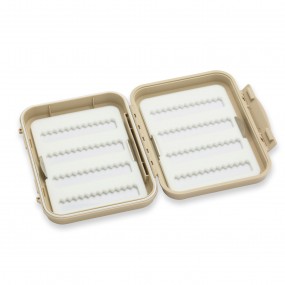 A fly case with two bonefish system foams suitable for storing small saltwater patterns such as Crazy Charlie.An elegant sand-coloured model designed in the image of flat sand.Newly added S size...