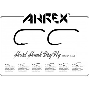 Wide gape – short shank dry fly hook. Perfect for dry flies with a bit more “volume”. Available in size 8 – 18 Black Nickel Finish Chemically sharpened with small barb 24 Hooks per package